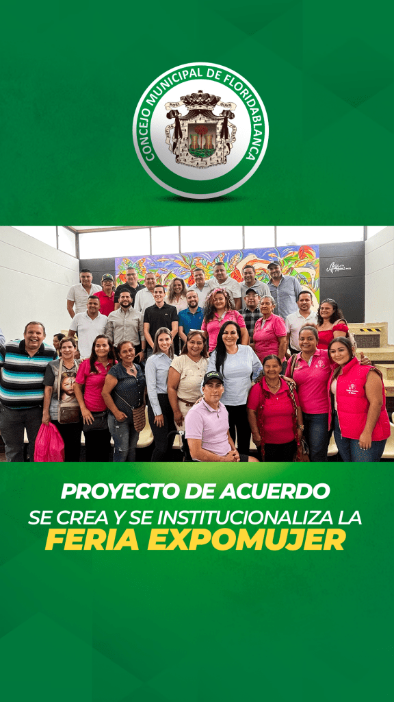 FLORIDEÑOS HOY 27 DE FEBRERO GRACIAS A LA INICIATIVA DE LAS CONCEJALAS CLAUDIA HERNANDEZ, LILIANA MENDOZA Y COMO PONENTE EL CONCEJAL GERMAN DURAN SE APRUEBA LA CREACION E INSTITUCIONALIZA DE LA FERIA EXPOMUJER EN EL MUNICIPIO DE FLORIDABLANCA.